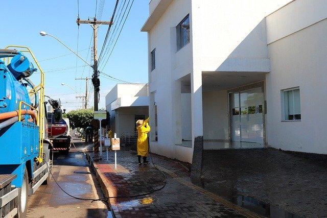 Visando matar o vírus do COVID-19 que possa estar presente em locais de grande circulação de pessoas, a Prefeitura de Três Lagoas adotou a medida de lavar entre hoje e amanhã (27) as calçadas, portas, janelas e maçanetas de áreas externas dos Hospitais, Unidade de Pronto Atendimento (UPA), Supermercados e Farmácias das Unidades Básicas de Saúde do Município.