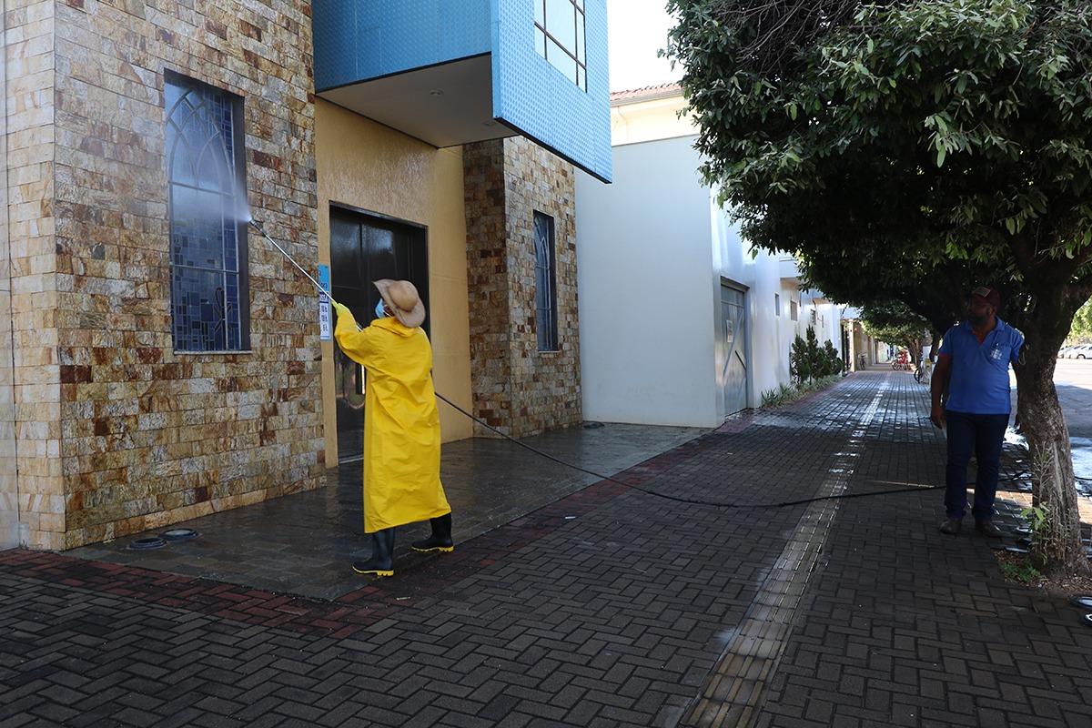 “Nós passaremos lavando a calçada e já pulverizando a água clorada nestes locais que as pessoas podem ter tido o contato da área externa destes estabelecimentos. Já na área interna cada um faz a sua higienização”, explicou.