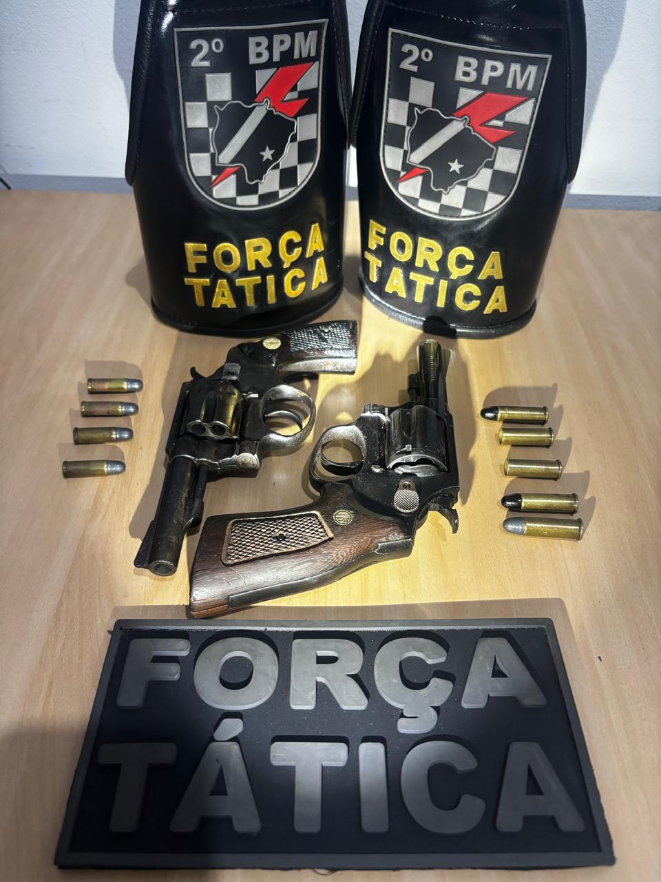 Os agentes apreenderam dois revólveres usados pelos suspeitos, além das armas da guarnição envolvida, uma carabina Imbel IA2 e uma pistola Beretta APX, que foram entregues à Polícia Judiciária Militar para apuração de praxe.